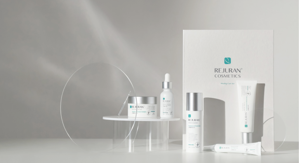 เซตดูแลผิวหน้าช่วยบำรุงผิว เพิ่มความชุ่มชื้น ชะลอและลดเลือนริ้วรอยอย่างมีประสิทธิภาพด้วย c-PDRN สกัดจากชิ้นส่วน DNA ปลาแซลมอนที่อยู่ในทะเลธรรมชาติ ซึ่งเป็นส่วนผสมหลักของ REJURAN COSMETICด้วยเทคโนโลยีที่ได้รับสิทธิบัตรเฉพาะที่เรียกว่า DOTTM (DNA Optimizing Technology)